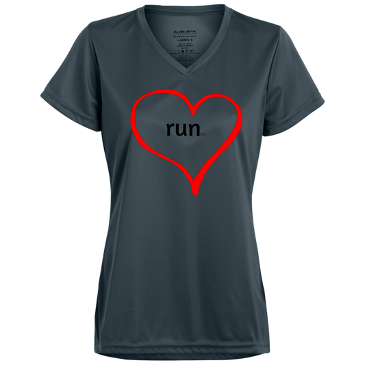 Run Heart - Ladies’ Moisture-Wicking V-Neck Tee