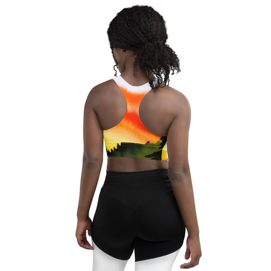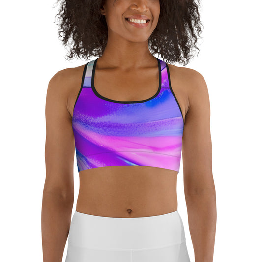If you're going to run in a sports bra why be plain, Hr all over print designs are vibrant colors giving you and your run a personality!